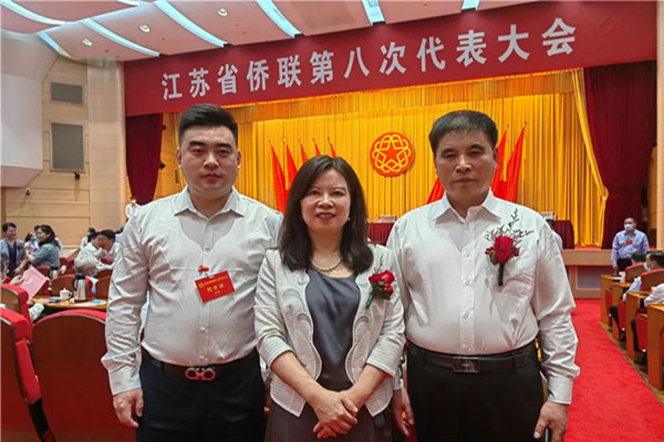 父子二人共同出席江苏省侨联第八次代表大会 左一为何小静 左三为何俊成