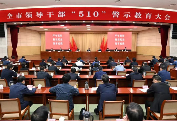 徐缨指出,全市领导干部“510”警示教育大会是盐城市连续坚持16年的好传统,充分表明市委纵深推进全面从严治党、坚定不移正风肃纪反腐的坚定意志和坚强决心。全市党员干部要以反面案例为“镜”,引以为鉴、筑牢防线,清清白白做官、堂堂正正做人、干干净净做事,树牢廉洁从政的形象、激情干事的形象、一心为民的形象,埋头苦干、攻坚克难,锐意进取、拼搏争先,勇当沿海地区高质量发展排头兵,以实际行动迎接党的二十大胜利召开。