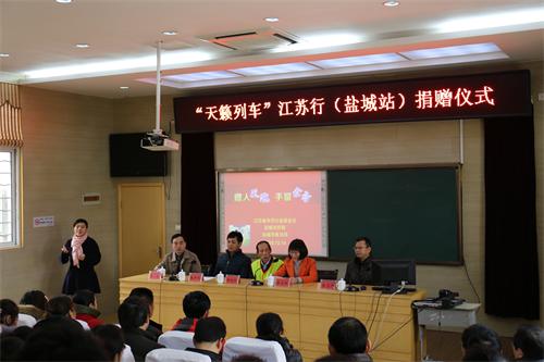 12月14日,澳洲侨胞魏基成“天籁列车”江苏行盐城站捐赠仪式举行,捐赠近50万元的助听器、语音教学机和“暧心”棉衣。