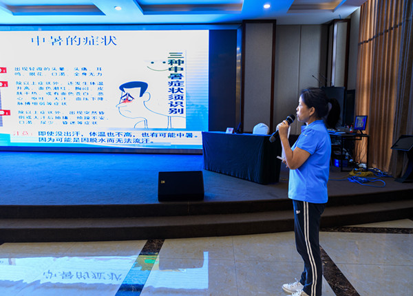 沈桂芳就夏季防中暑、防溺水以及急救相关知识进行了深入浅出的讲解,同时还利用实物模型人体,将心肺复苏术的3个核心步骤进行了细致、规范的现场演示。职工们上台实操练习,掌握了急救技能。讲座还设置了有奖竞答环节,职工们踊跃参与,取得预期效果。