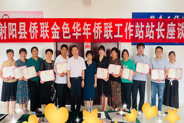 射阳县侨联组织四明镇、海河镇、兴桥镇、新坍镇、长荡镇、特庸镇、洋马镇、黄沙港镇、海通镇、盘湾镇、开发区和金色华年侨联工作站等12家负责人,围绕侨联基层工作站建设情况,逐一交流各自开展情况、存在问题、意见建议及下步工作打算,并为11家侨联基层工作站授予“射阳县侨联·金色华年乡镇侨联基层工作站”,同时聘任11家侨联基层工作站负责人为站长。