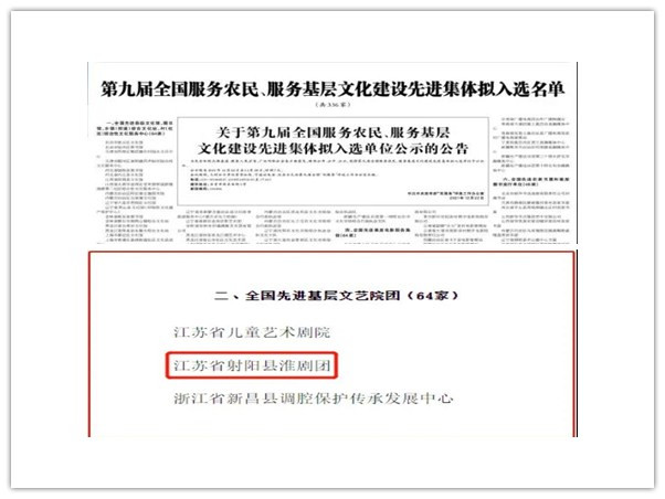 日前,由中宣部主办的第九届全国服务农民、服务基层文化建设先进集体名单揭晓,“盐城市华侨文化交流基地”射阳县淮剧团喜获全国先进基层文艺院团称号。