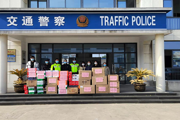 陈荣山与区侨界爱心人士慰问正在盐城高速西出口处执勤的市公安局交警支队高新区中队任队长和卡口中队柏副队长,了解抗疫防控情况,送去侨联组织关爱和侨界人士“爱心”。区侨界爱心人士同心抗疫、捐资选购闲趣饼干2箱、达利园面包6箱、红牛8箱、牛肉面10箱、牛奶12箱、矿泉水23箱、消毒液200瓶、口罩1.5万只等数万元食品和防疫物资,感谢昼夜奋战在抗疫防控一线的执勤公安民警,叮嘱大家注意劳逸结合,做好安全防护,“守一道卡、护一座城”,为全区人民生命健康保驾护航。(盐都区侨联)